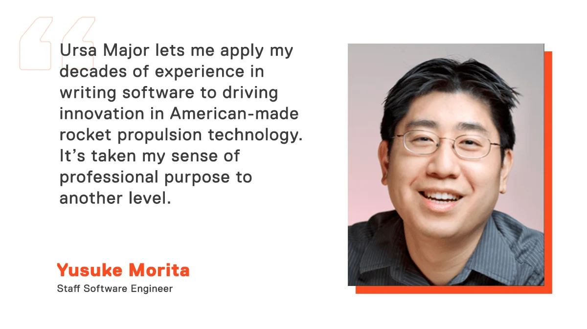 Ursa Major lets me apply my decades of experience in writing software to driving innovation in American-made rocket propulsion technology. It’s taken my sense of professional purpose to another level. And the fantastic culture at Ursa Major has made me feel welcome and connected even though I work remotely.